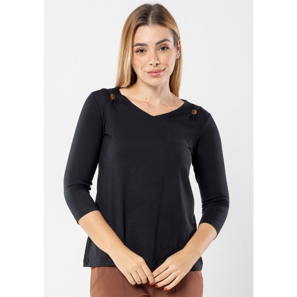 Blusa Pau a Pique Básica Manga 3/4 Preto P / Preto