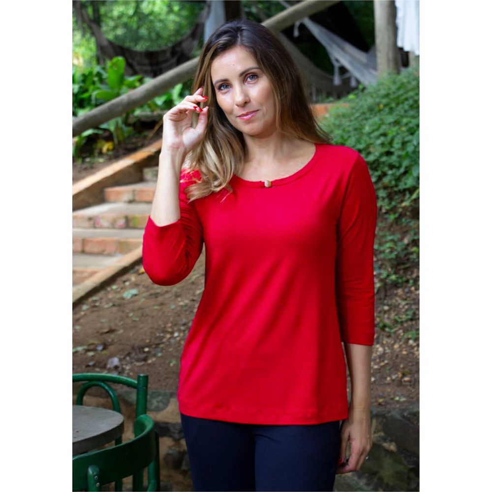 Blusa Pau a Pique Básica Manga 3/4 Vermelho G / Vermelho