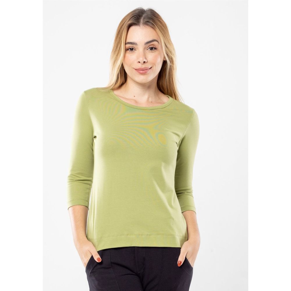 Blusa Feminina construída em cotton na cor Verde Claro, modelo tradicional.