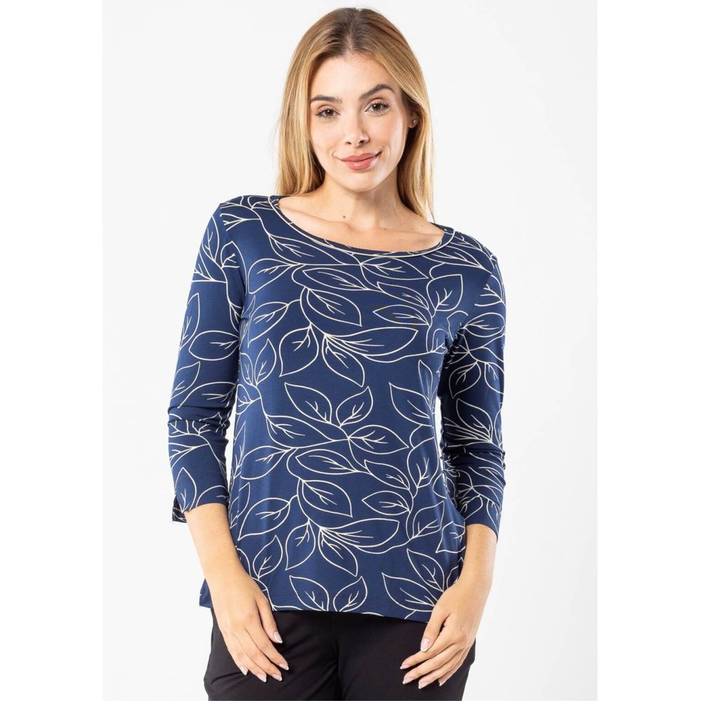 Blusa Pau a Pique Manga 3/4 Estampada Azul Marinho XL / Azul Marinho