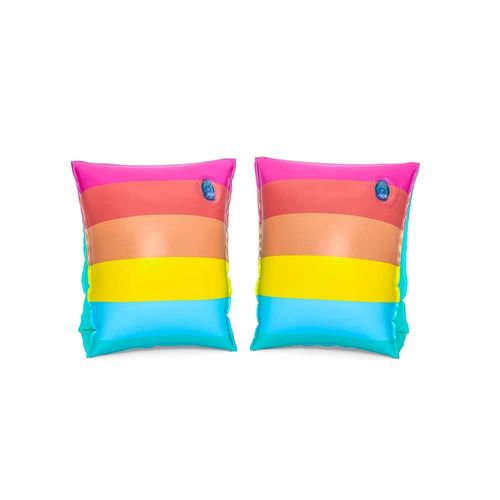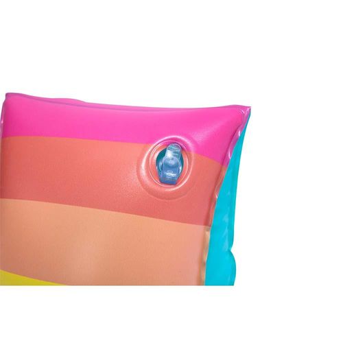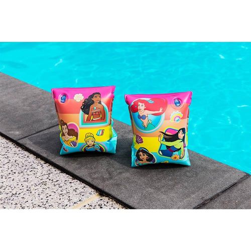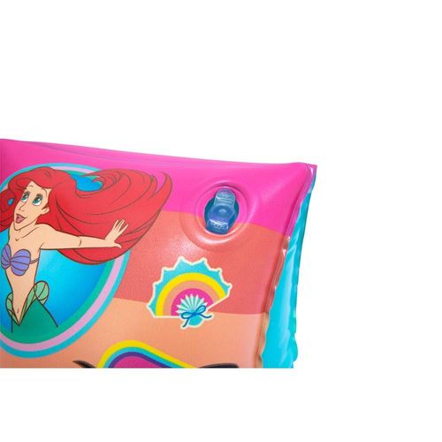 Brincadeiras na água com muita segurança. Com esta boia de braço, você ficará mais tranquilo para deixar a sua criança tomar banho de piscina. Feita em vinil, ela oferece qualidade e resistência. Possui estampa das Princesas Disney em acabamento do seu incrível clássico rosa. Recomendado para crianças de 3 a 6 anos.