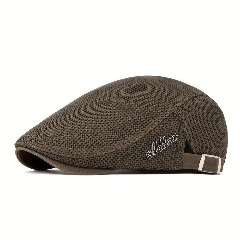 Boina Masculina Leve E Respirável Em Malha Boné Retrô Britânico Ajustável Verde Militar