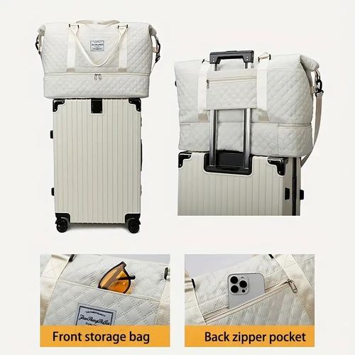 Bolsa de Viagem Feminina Grande Capacidade Impermeável Tote com Compartimento para Sapatos azul claro