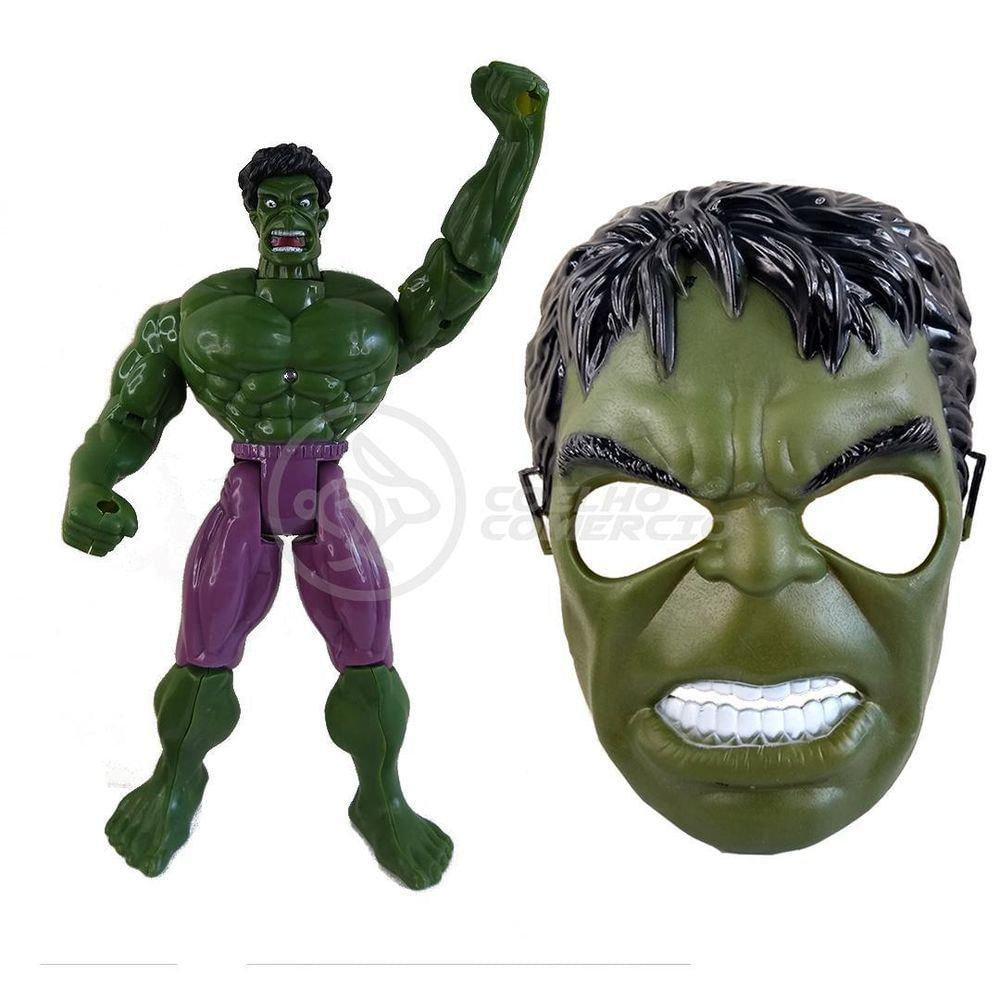 Boneco 25cm Action Figure Incrivel Hulk + Mascara Vinga 16cm Os bonecos vieram para enlouquecer os apaixonados por pelo incrivel Universo Marvel. Não perca tempo, entre logo nessa onda.