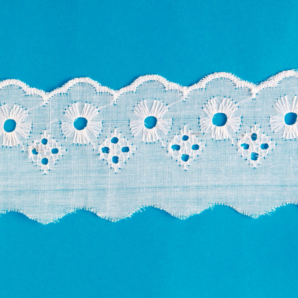 Bordado Inglês de Poliéster Nybc 5cm com 13,70m Branco