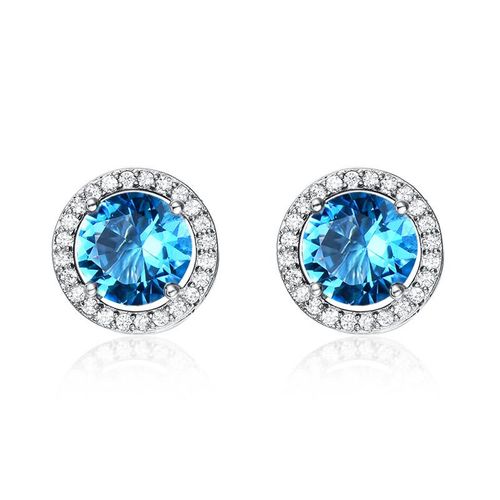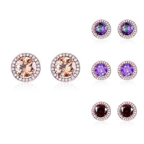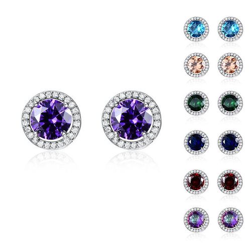 Brincos de Cristal Redondos Multicoloridos em CZ Cor Prata roxo