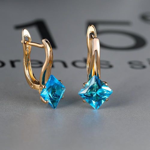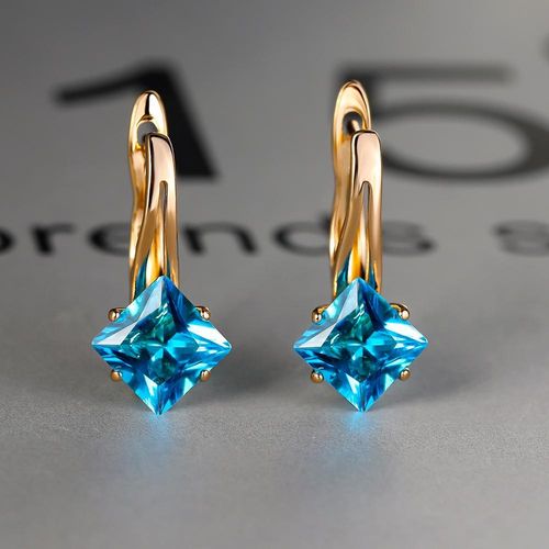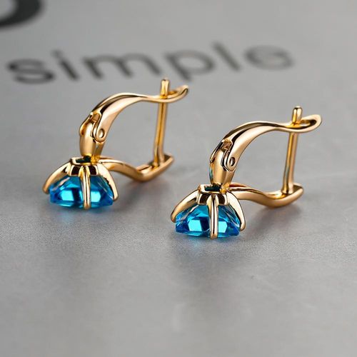 Brincos de Moda com Cor Dourada e Pedra Azul Aqua aqua