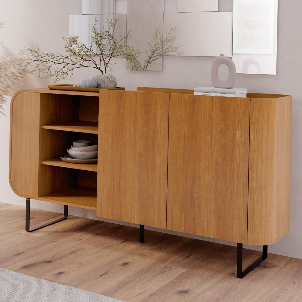 Buffet Aparador 160cm 2 Portas Orgânico Pé Metal Sindy Nature Z56 - Mpozenato Este Buffet é a escolha ideal para quem busca funcionalidade aliada a um visual atual, contribuindo para uma Sala De Jantar organizada e com presença marcante no ambiente.