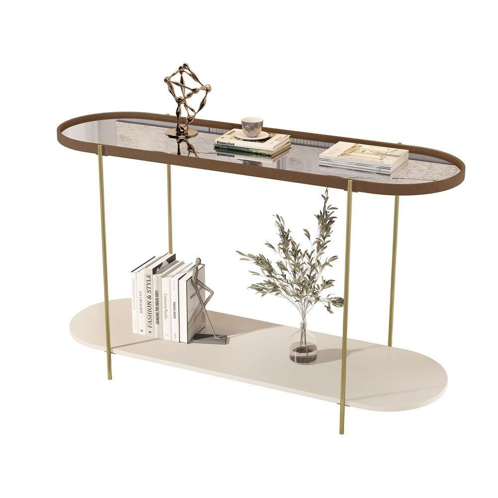 Buffet Aparador Alamanda Castanho Com Off White Pe Dourado - Moveis Jb