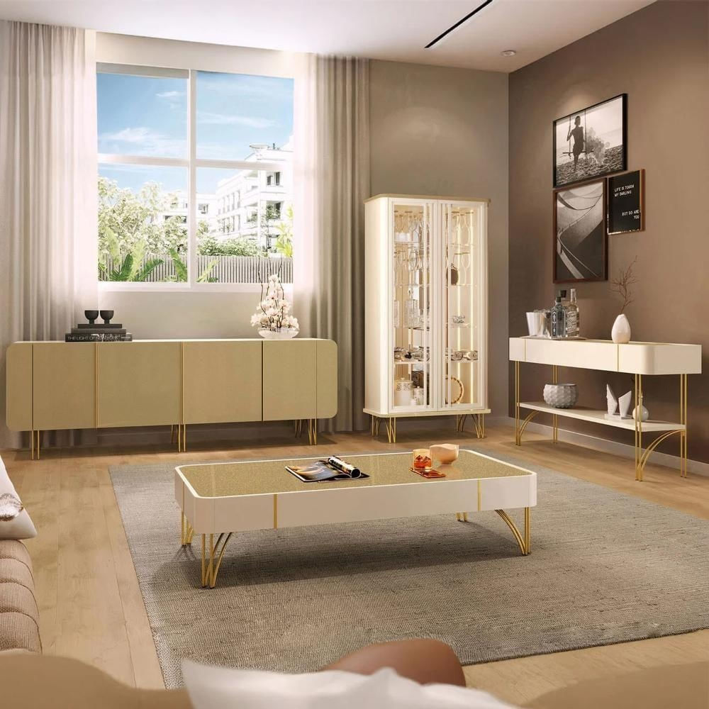 Buffet Aparador Cristaleira e Mesa Centro Ester Off/Champanhe - HB Móveis