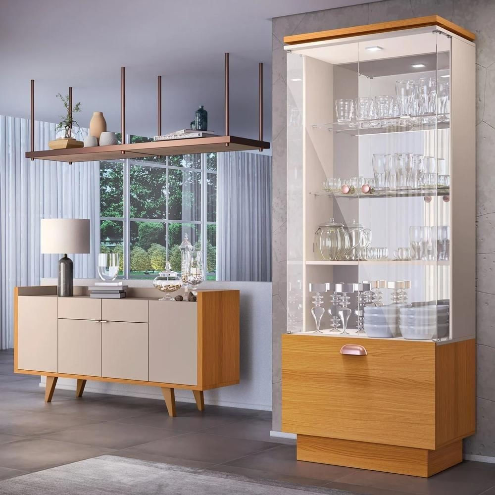 Buffet Aparador Melodia E Cristaleira Aura Off-cinamomo - Hb Móveis