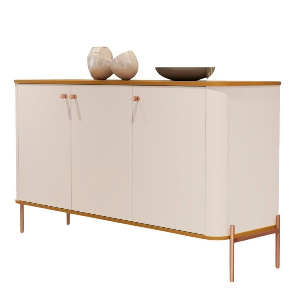 Buffet Aparador Para Sala De Estar 3 Portas Pés Em Aço - Off White Nature Bronze Off White Nature Bronze