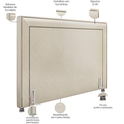 A Cabeceira Cama Box Casal 140 cm P05 Berlim Corino Pérola - Lyam Decor é uma peça singular e elegante. Com design moderno, ela traz destaque e beleza na hora de compor seu quarto. Seus detalhes em tachas, denotam todo o cuidado e carinho na hora da produção. Uma cabeceira que trás presença, beleza e originalidade aos apreciadores do minimalismo, agregando valor aos pequenos detalhes. Com materiais de excelente qualidade e acabamento impecável, o revestimento em Corino combina majestosamente com o restante da mobília. Podendo ser disposta com mesas de cabeceira e apoio, calçadeira ou recamier. É a composição perfeita para os amantes da elegância! Você merece o melhor, garanta já a sua!! Dimensões da Cabeceira (L x A x P) 140 x 128 x 10 cm Características da Cabeceira: Estrutura em madeira de eucalipto. Revestimento em tecido Corino na cor Pérola. Densidade da Espuma D-20. Acompanha suporte frame para fixação. Pés em Acrilíco Metalizado. Contorno com tachinhas. - Por se tratar de estofado as medidas podem ter uma pequena variação de até 3 cm. - A tonalidade do produto real poderá ter ligeira variação devido o lote de tecidos. - A limpeza deve ser feita com pano levemente umedecido em água limpa, sem esfregar, não utilizar produtos abrasivos, desengordurantes, álcool ou solvente.Observações importantes: - Produto para uso residencial em ambiente interno, não devendo ficar exposto diretamente ao sol, calor e umidade excessivos. - Pode haver alguma diferença de tonalidade entre a imagem e o produto real, por conta do tratamento de imagens e a calibração de cores do seu monitor. - As imagens são meramente ilustrativas, não acompanham objetos de decoração e eletrônicos. - Ao receber a mercadoria, o cliente deve verificar as condições da embalagem, caso haja alguma avaria não assine o comprovante de recebimento. - Montagem, desmontagem e outras instalações serão de responsabilidade do cliente. Não nos responsabilizamos, no ato da entrega, por subir escadas/elevadores ou pelo transporte por guincho em apartamentos. Eventuais despesas são de responsabilidade do comprador. - Confira as dimensões do produto e certifique-se de que passará normalmente por supostos elevadores, portas, escadas e/ou corredores de sua residência.