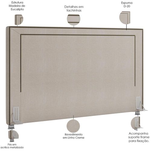 Cabeceira Cama Box Casal 140 cm P05 Berlim Linho Creme - Lyam Decor