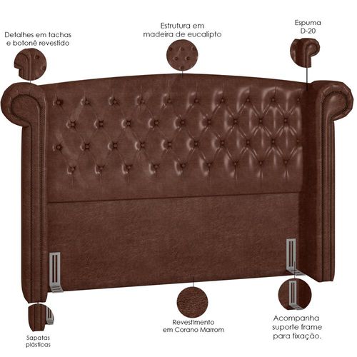 Cabeceira Cama Box Casal Queen 160 cm P05 Sofia Corino Marrom - Lyam Decor