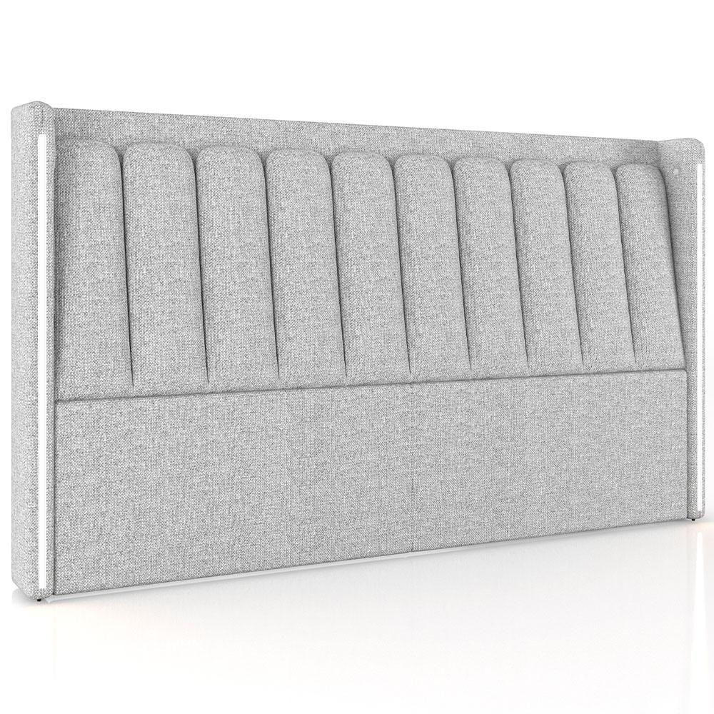 Cabeceira Cama Box Queen Estofada Com Led 160cm Moan P05 Linho Cinza Claro - Lyam Decor