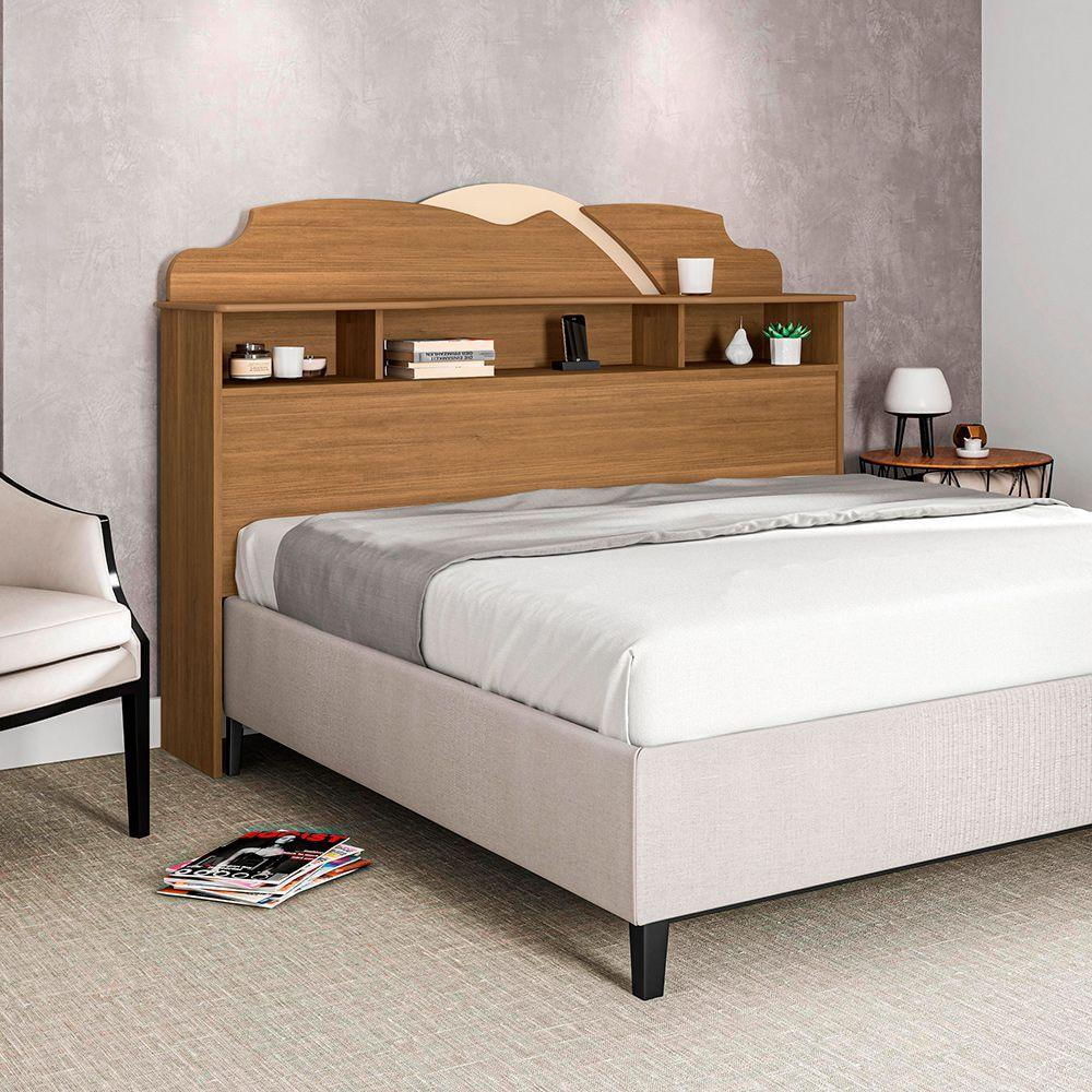 Cabeceira Casal Cama Box 1,40m Com Nicho Cristal - Amêndoa-off White - Cor: Bege