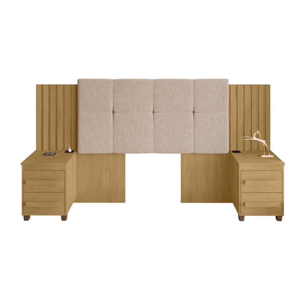 Cabeceira Casal Extensível Com 2 Mesas De Apoio Ripado E Estofado Cinamomo Suíça - Rv Móveis