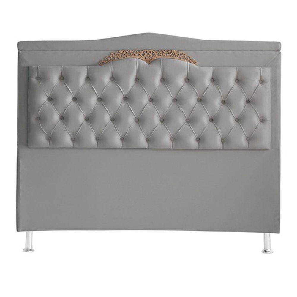 Cabeceira De Cama Box Helena Casal 140 Cm Capitonê Retro Botão Encapados Suede Prata Eli Móveis