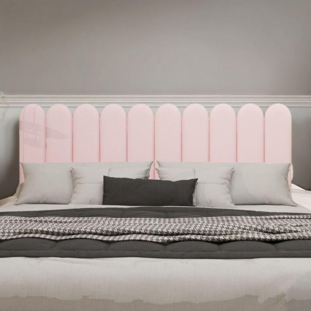 Cabeceira Design Nuvem 20x60cm King Size 10 Placas Em Suede Rosa Bebe