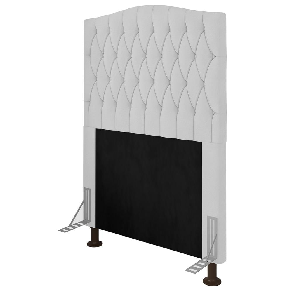 Cabeceira Estofada Cama Box Solteiro Greta 90cm com Frame Corano Branco - Desk Design