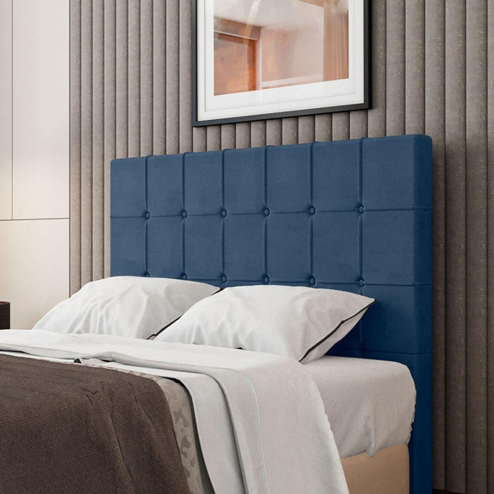 Cabeceira Estofada Casal 140 Cm Turmalina Veludo Azul Marinho