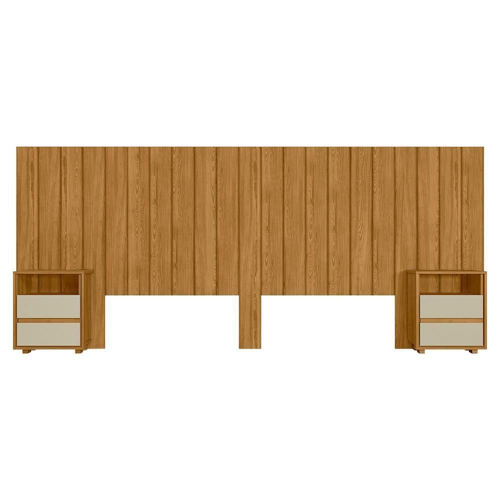 Cabeceira Extensivel Com 2 Mesas Laterais Mdf Frida 315 Cm Cumaru Opala Madetec