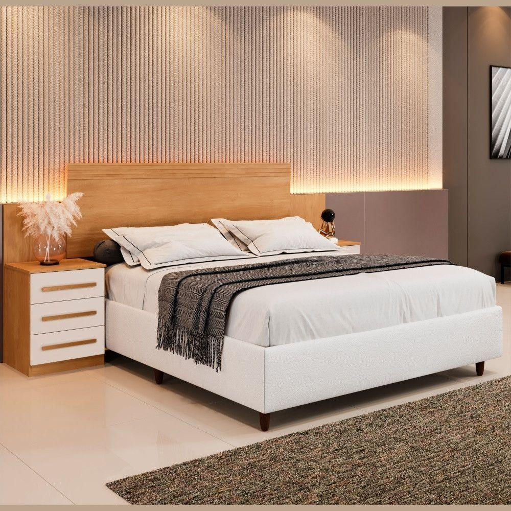 Cabeceira Imperio Extensiva Estofada Com Mesa De Cabeceira Benetil Moveis A Cabeceira Imperio e perfeita para deixar o seu quarto mais pratico e aconchegante. Ela conta ainda com duas mesas de cabeceira que deixara tudo mais organizado. Nelas, tem gavetas em corredicas telescopicas proporcionando maior abertura e melhor aproveitamento do espaco. E produzida em chapa de 15mm. Pode ser utilizada para colchoes de 140 ou 160cm. Alem disso, nao necessita parafusar na parede, dando mais flexibilidade no seu ambiente.