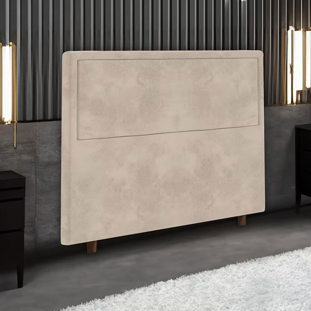 Cabeceira para Cama Box Queen Size Evelyn com Revestimento em Suede 160cm de largura Portobel Bege