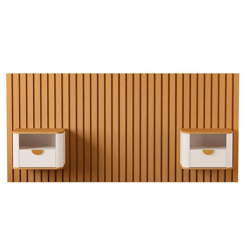 Cabeceira Ripada Maracá Solteiro 2 Mesas Jb Buriti Off White Com Nature - Moveis Jb