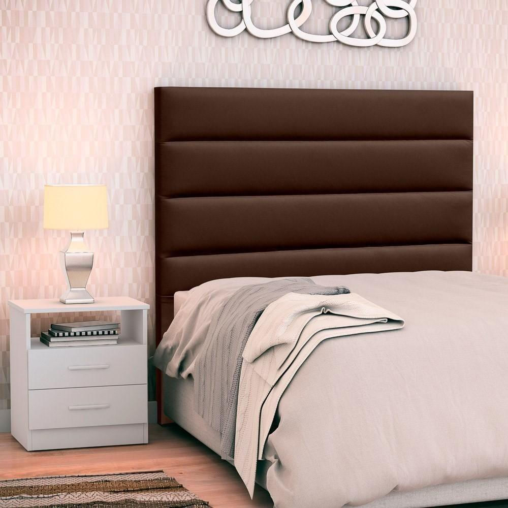 Cabeceira Cama Box Solteiro 90cm Greta Corano Marrom E 1 Mesa De Cabeceira Flex Dm1 Branco - Mpozenato