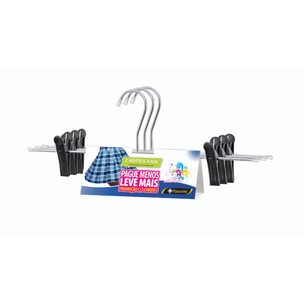 Cabide de Saia e Shorts Cromado Organização Roupa Armario - Kit com 3 unidades