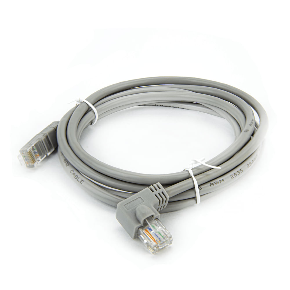 O Cabo de Rede Patch Cord Cat5 Plug 90° Graus tem posição lateral. Pode comportar interligações com modems, ethernet HUB, roteadores, computadores e outros equipamentos.