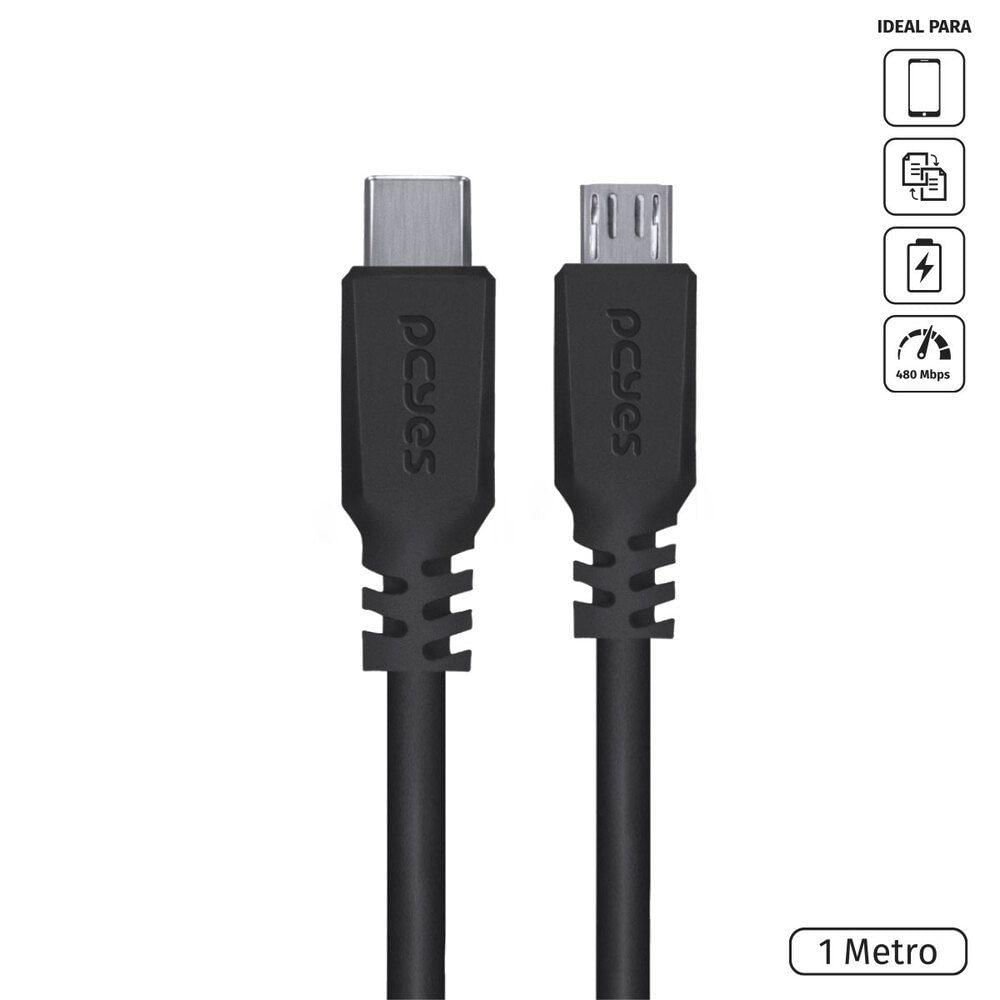 Cabo Para Celular Smartphones Usb Tipo C Para Micro Usb 2.0 1 Metro Preto - Pucmp-1
