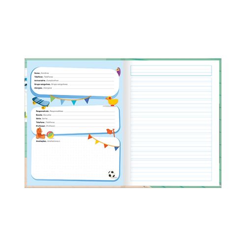 | Mais Informações | Capa: dura Folhas: especiais para treino de caligrafia Miolo Parte interna da capa decorada Produto certificado: FSC® Formato: 187mm x 245mm Gramatura: 56 g/m² Número de folhas: 40 folhas |