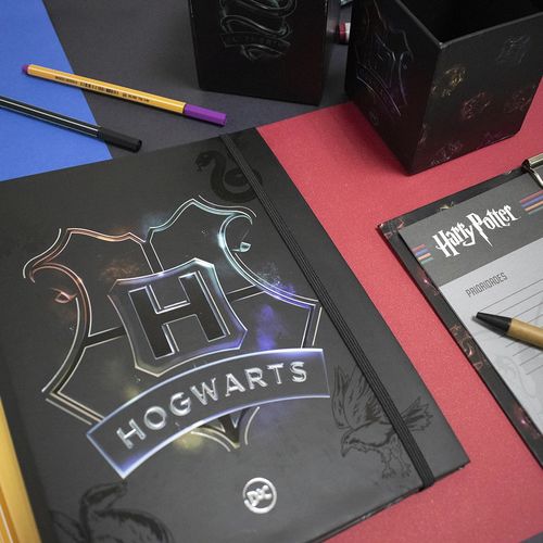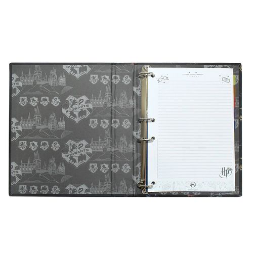 O Caderno College Argolado Dac Harry Potter é muito legal, não só para quem é fã do bruxo. Ele é a passagem perfeita para o mundo de Hogwarts, ideal para estimular a organização dos estudos diários e alcançar as metas e objetivos sem perder a motivação. Cheio de v ersatilidade, suas argolas articuladas abrem e fecham para facilitar a ação de inserir ou retirar folhas. Estiloso no tamanho 1/4 (1 8,5x25,1cm), foi feito para abrir ainda mais opções de uso e ir além da escola ou faculdade. Possui 48 folhas decoradas, 10 divisóri as e fechamento em elástico.