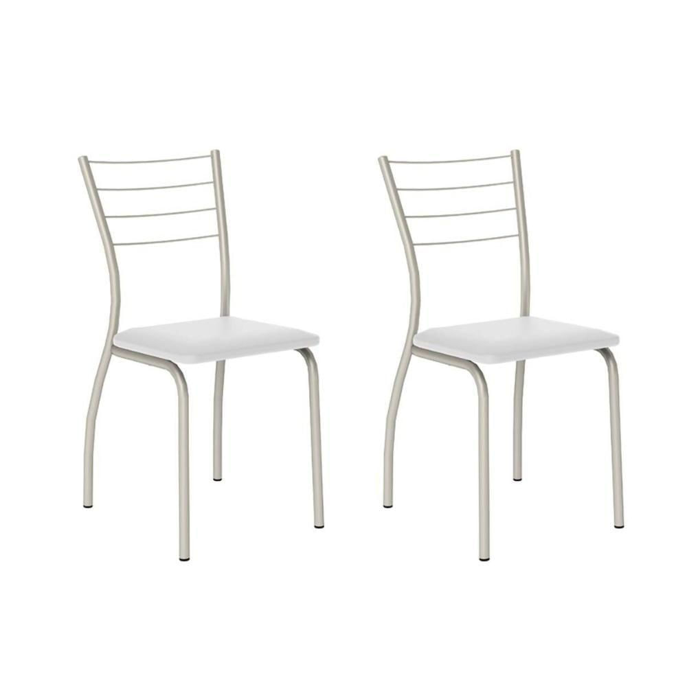 Cadeira De Cozinha 1700 Kit 2 Un Prata - Assento Courano Branco - Carraro