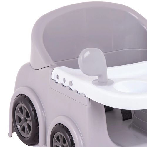 São 2 níveis de altura disponíveis para acompanhar o crescimento dos pequenos e bandeja de refeição ajustável em 3 posições e removível. Por fim, possui cinto de segurança para que ela fique presa e possa ser instalada sobre qualquer tipo de cadeira.