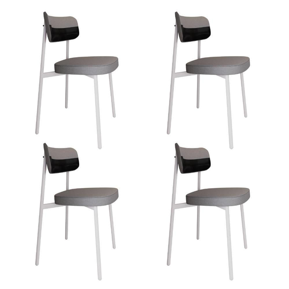 Cadeira Alloa Fixa Com 4 Pés 50 X 44,7 X 83,8 Cm Com 4 Unidade Corriente Cinza Claro Courino Preto