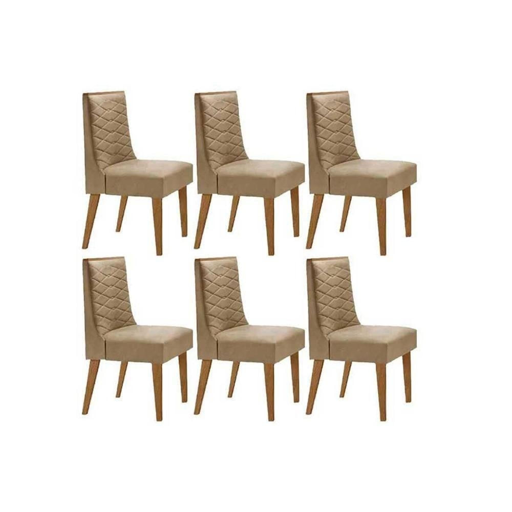 Cadeira De Cozinha Dafne Kit 6 Un Madeira Capuccino/linho Bege Turim - Rufato