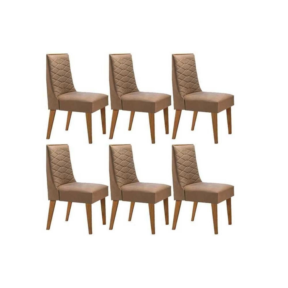 Cadeira De Cozinha Dafne Kit 6 Un Madeira Capuccino/linho Capuccino - Rufato