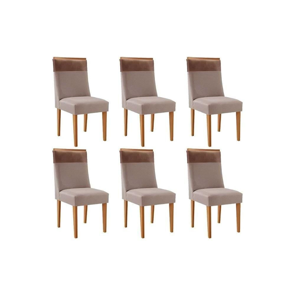 Cadeira De Cozinha Jaspe Kit 6 Un Naturalle/linho Capuccino/corano Capuccino - Rufato