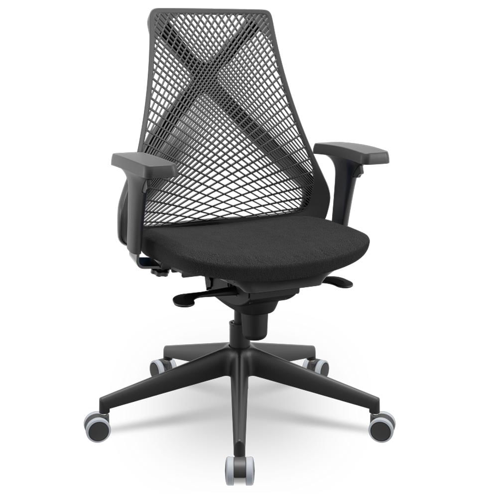A começar pelo encosto telado com desenho X, que proporciona excelente ventilação e se adapta perfeitamente às curvas da sua coluna, oferecendo suporte lombar personalizado, ao passo que os braços com 3 tipos de regulagem com ajuste da altura, o giro e o avanço horizontal, tudo para que você encontre a posição ideal e evite tensões nos ombros e braços. Além disso, a essa cadeira giratória com rodízios permite fácil movimentação e rotação de 360°, otimizando o seu espaço de trabalho.