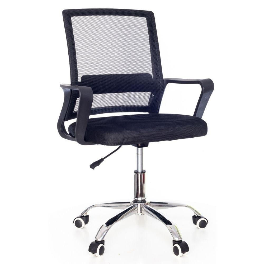 Cadeira De Escritório Secretária Com Base Cromada Com Rodinha Fortt Madri Preta - Csf05-p