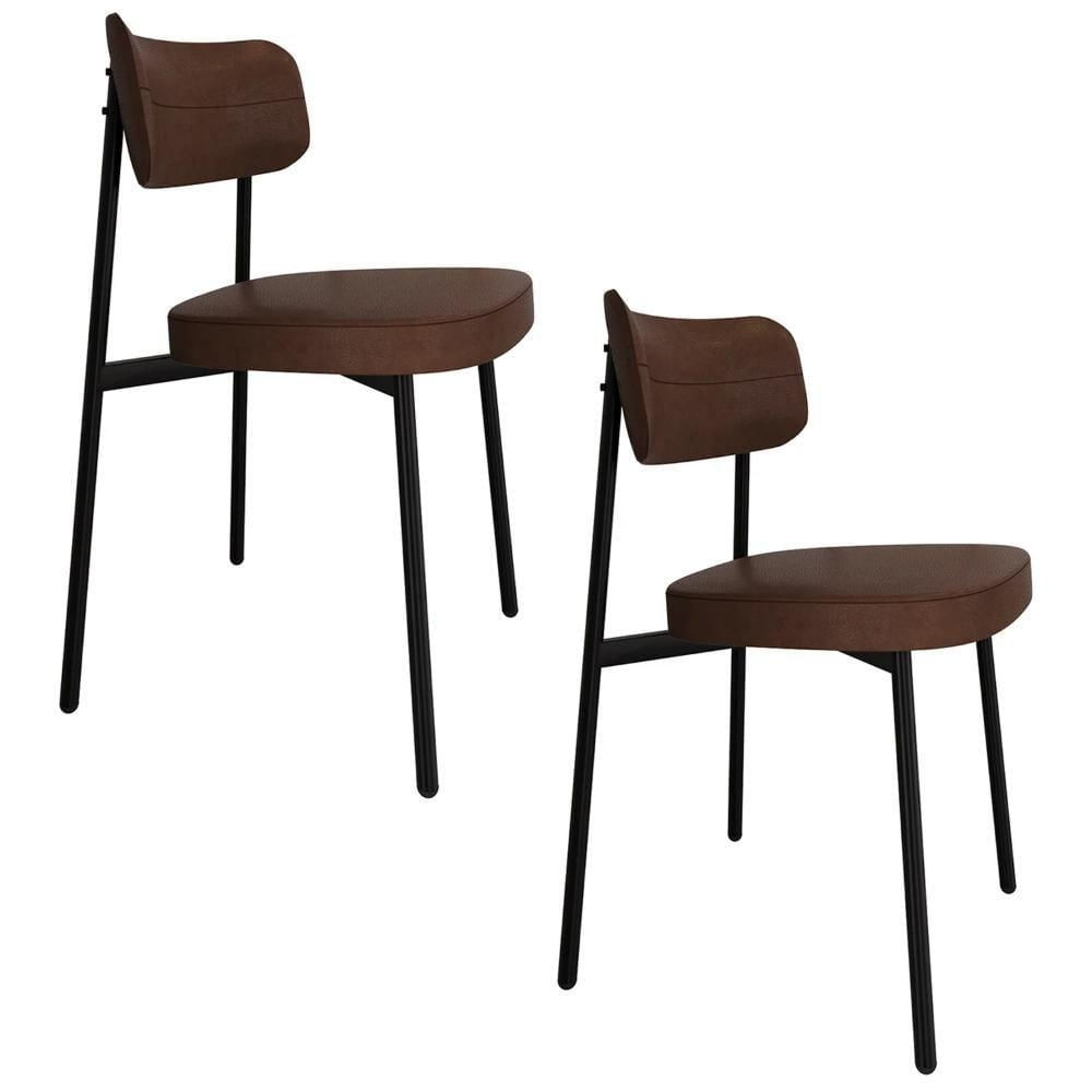 Cadeira De Jantar Estofada Kit 2 Ella M25 Sintético Marrom - Mpozenato