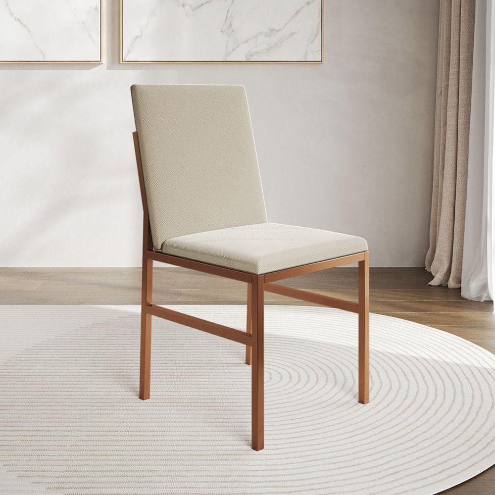 Cadeira De Jantar Estofada Mônaco Base Cobre Veludo Para Sala Cozinha Mesa Decoração - Cobre-bege