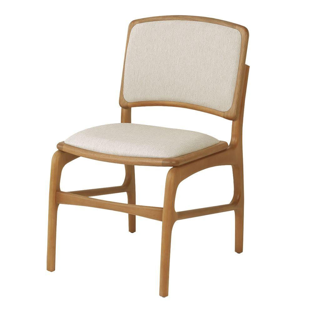 Cadeira De Jantar Florença Em Madeira Jequitibá Natural Encosto Em Tecido Premium Linho Bege