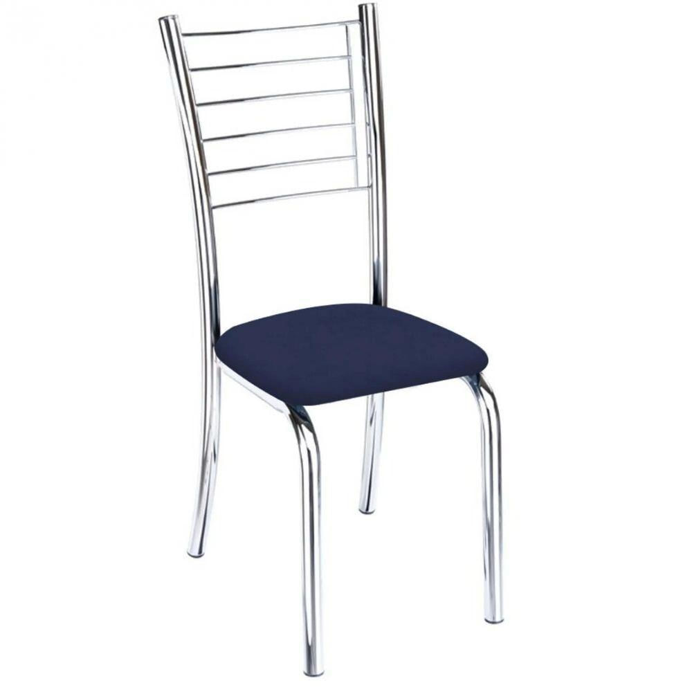 Cadeira De Jantar Lara Cromada Para Cozinha Assento Sintético Azul Marinho - Aurora Line