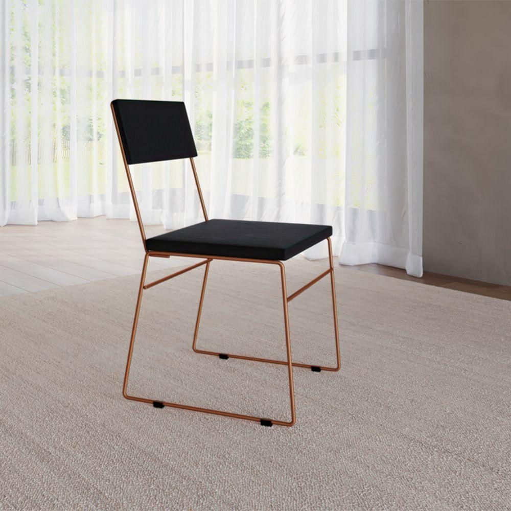 Cadeira De Jantar Málaga Veludo Base Cobre Para Mesa Sala Jantar Cozinha E Decoração - Cobre-preto