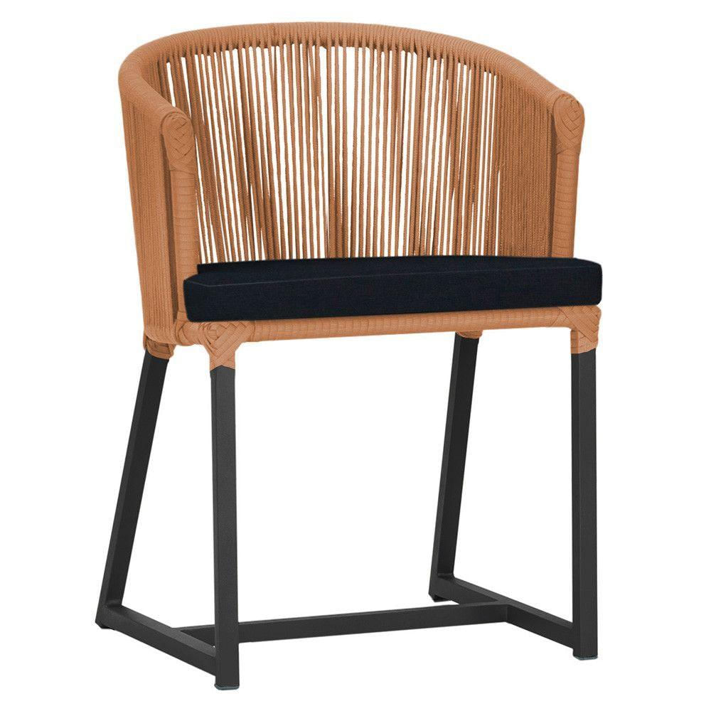 Cadeira De Jantar Noronha Alumínio Preta E12 Trama Terra Cota